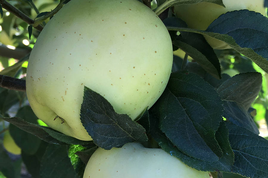 A truly unique variety from Zaiger, this heat loving apple has totally white skin and flesh with a sweet, subacid flavor. Ripens in early July. Needs a mid blooming apple for pollenization. Hardy to zone 5. Chill hours are estimated at 3-400. Available on M111.