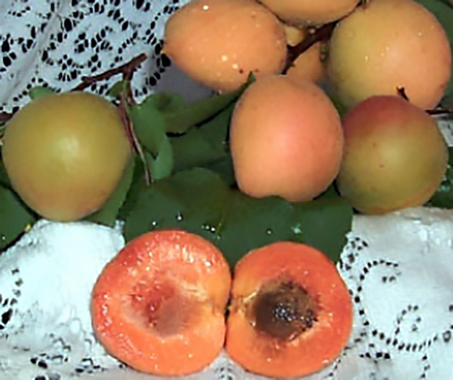 Fruit is large with beautiful yellow skin and a red blush. Yellow flesh is sweet and very juicy. From Montrose, Colorado; very hardy and frost resistant. Pit is sweet and edible. Ripens in mid July after Chinese. Zones 5 to 9. 600 hours. Available on Cit.