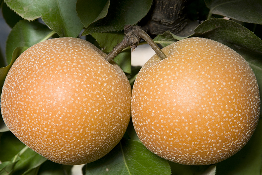 Large, top quality fruit; high scoring in taste tests; perhaps the tastiest Asian pear. Juicy, very sweet, flavorful, refreshing, low acid. Brownish orange skin, russet type. Blooms late, ripens early to mid August. Zones 5 to 10. 3-400 hours. Pollenized by Shinko, Chojuro, Bartlett or 20th Century. Available on OHxF 333.