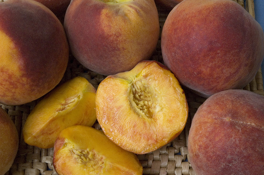 Popular yellow freestone peach on 5-6 ft. tree. Mild flavored fruit is large with sweet, low acid flesh and yellow skin with red blush. Ripens mid to late June in central Calif., earlier in low desert climates. Low chilling requirement, Zones 6 to 10. 250 hrs. or less. Good for desert areas. Self-fruitful. Available on: Nema.