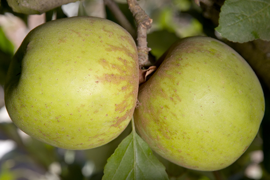 Greenish yellow apple with red blush to full red color. Sweet, crisp, superb flavor, even in hot climates. Use fresh or cooked, good keeper. 8-10 ft. tree; smaller with pruning. Ripens in early September. Zones 4 to 8. 500 hours or less. Self-fruitful. Available on Apple.