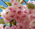 Upright growth to 30 x 20 ft. Spectacular large, double rosy pink flowers in drooping clusters, mid season, with long blooming period. Flowers appear before or with young red leaves. Zones 4 to 8. Available on Mazz.