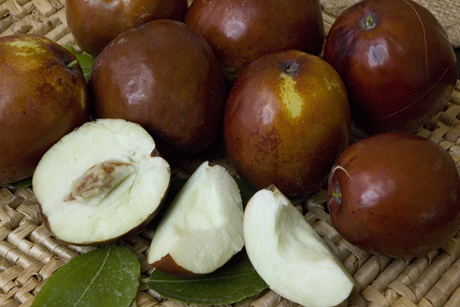 Round-shaped fruits are larger than Lang jujube, ripen earlier, and can be picked yellow-green and ripened off the tree. Self-fruitful. Tree is more spreading than Lang. Zones 5 to 10. 150 hours.