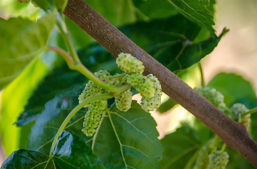 Small spreading tree with large, sweet fruit similar to blackberries, but white-pink in color. Unpruned height is 20 to 25 feet. Cold hardy to zone 6. 200 hours. Self-fruitful.