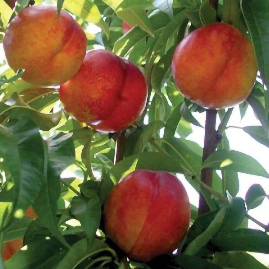 Outstanding yellow nectarine. Taste test winner two years in a row. Intense nectarine flavor with high sugar and the right amount of acid. Dark red over yellow skin with speckles, giving this variety its name. Ripens July to August. Zones 6 to 9. 4-600 hours. Self-fruitful. Available on Nema.