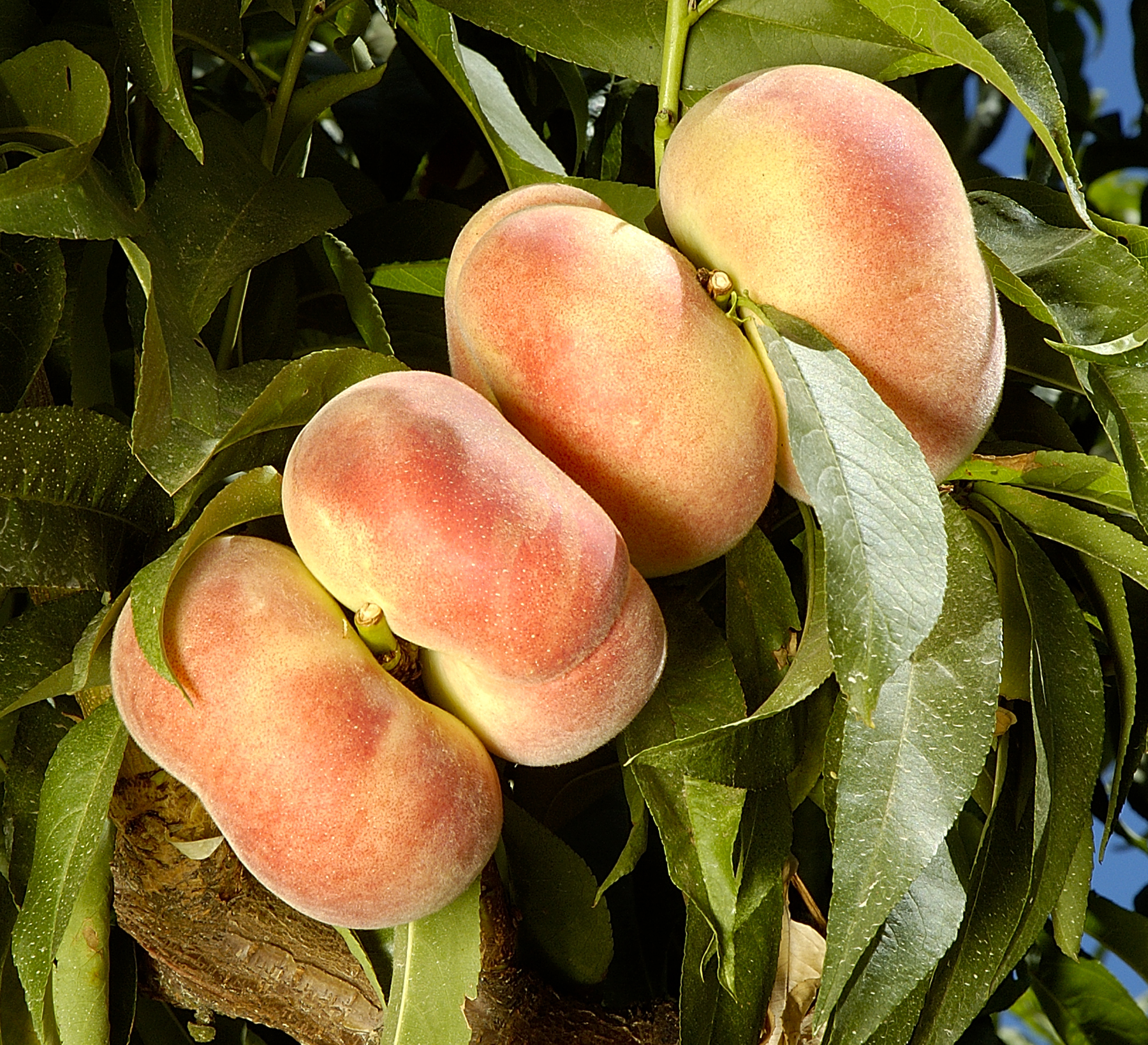 Unique white fleshed, freestone peach with a sunken center - shaped like a doughnut. Sweet, with a mild, almond-like flavor. Ripens late June/early July. Zones 7 to 10 on this rootstock. 2-300 hrs. Self-fruitful. Available on Nema.