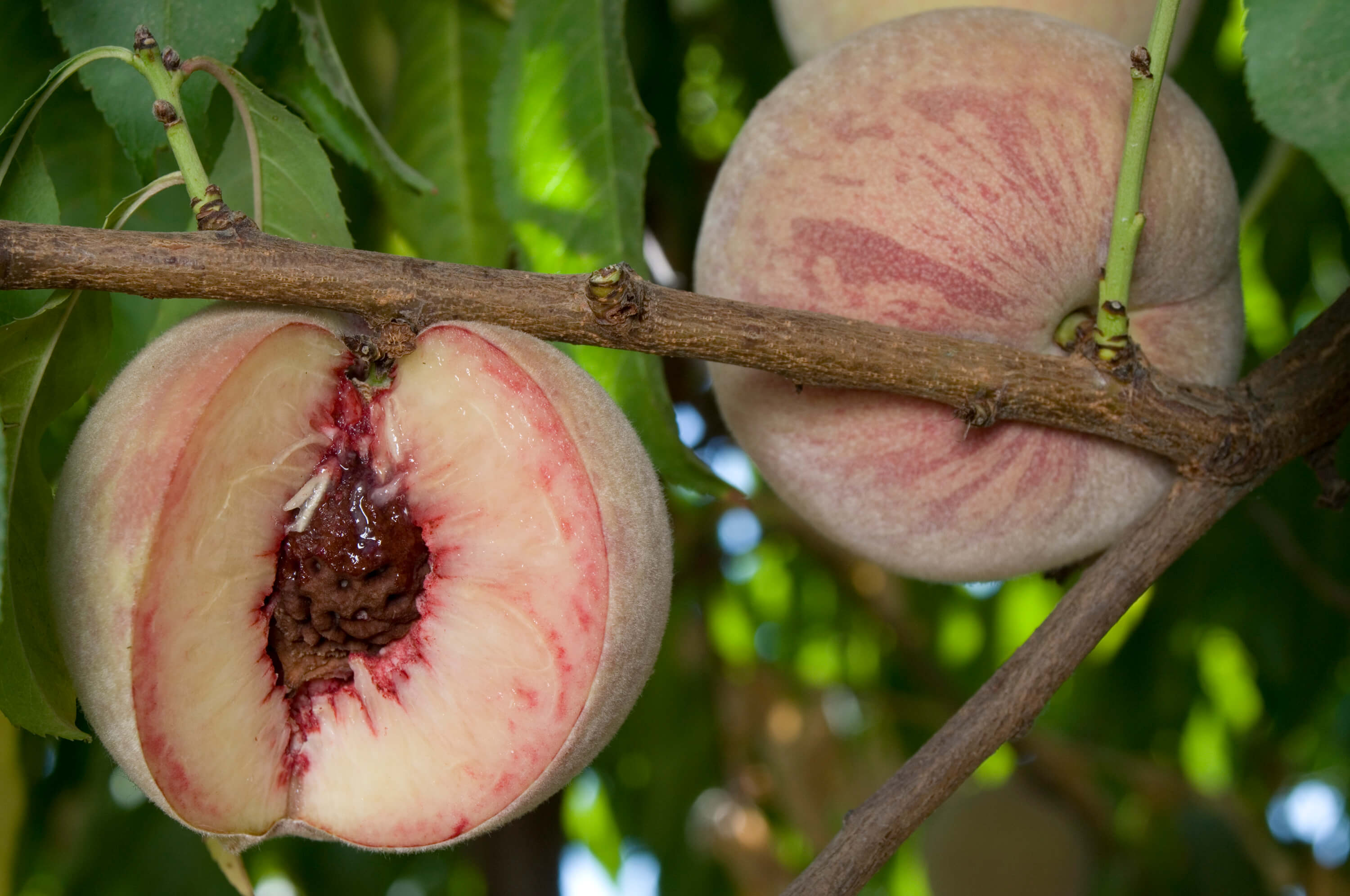 Large freestone with firm crimson and cream colored flesh. Tart until fully ripe, then has rich, sweet, distinctive flavor. Taste test winner. Highly resistant to peach leaf curl; good for wet spring areas where leaf curl is a problem. Ripens late August/early September. Zones 5 to 9. 700 hrs. Another nectarine or peach needed to pollenize. Available on Lov.