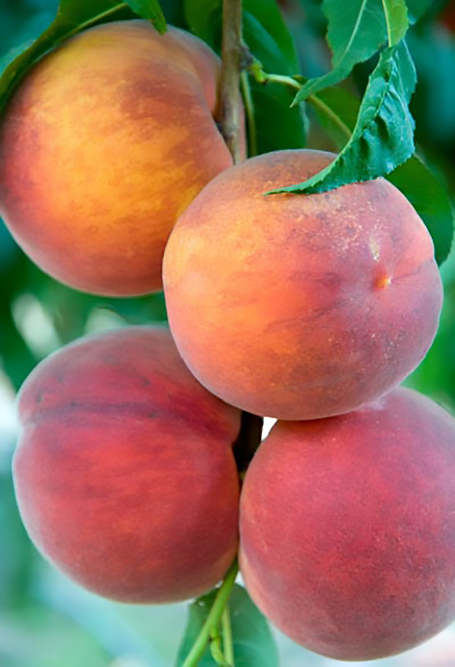 Favored late summer peach at Dave Wilson Nursery. Delicious true peach flavor with a good balance of sweetness and acidity. Fruit is large and the tree is extremely prolific. Good for fresh eating as well as canning and baking. Ripens in August. Self-fruitful. Zones 4 to 8. Recent low chill trials show Kaweah to be productive at 500 hours or less. Available on Lov.