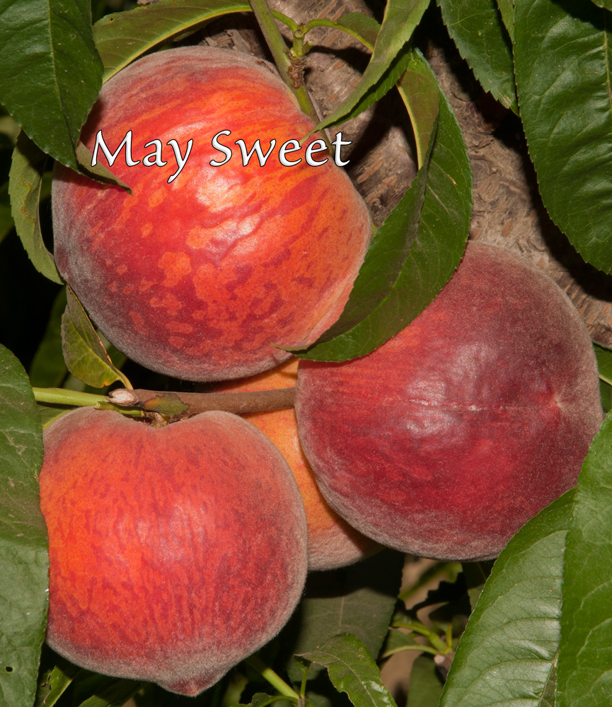 Very early ripening peach for warm winter climates with delicious, sweet, tangy, yellow semi-freestone fruit. Ripens in late May/early June; very large for such an early peach. Large, showy pink blossoms. Zones 7 to 10. 150-200 hrs. Self-fruitful. Pat. No. 7775 (Zaiger). Available on Nema.