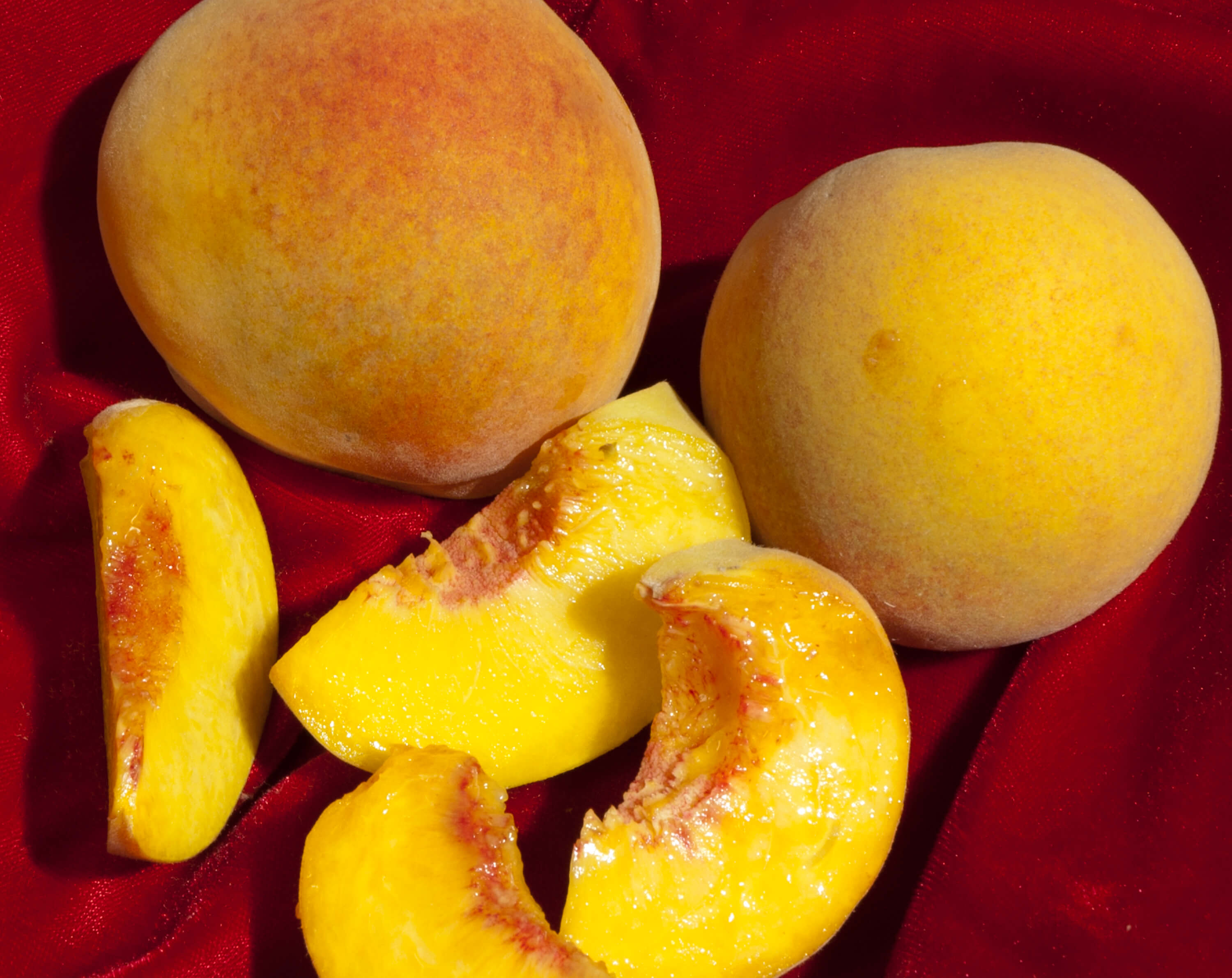 Flowering and fruiting peach variety. Highly ornamental with very showy, double red blossoms which cover the tree in early spring. Yellow freestone fruit is large, firm, sweet, juicy and richly flavored. Longtime favorite in southern California. Ripens in mid July to mid August. Zones 7 to 10. Low chilling requirement, 250-300 hrs. Self-fruitful. Pat. No. 4195. Available on Nema.