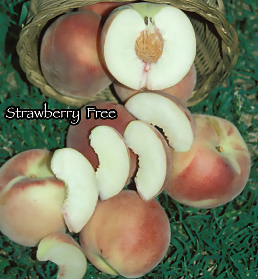 Longtime favorite white freestone peach for California. Very sweet, aromatic, juicy with superb, delicate flavor. Ripens late June/early July. Zones 7 to 9. 4-500 hrs. Self-fruitful. Available on Lov.