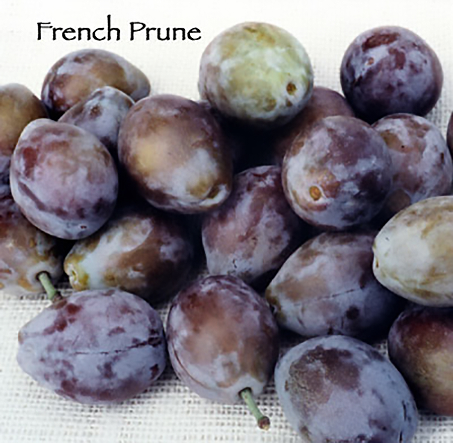 California's commercial prune. Reddish purple skin, dark amber flesh. Very sweet, high quality fruit - dessert/can/dry. Ripens in August. Zones 5 to 9. 800 hrs. Self-fruitful. Available on Mari.