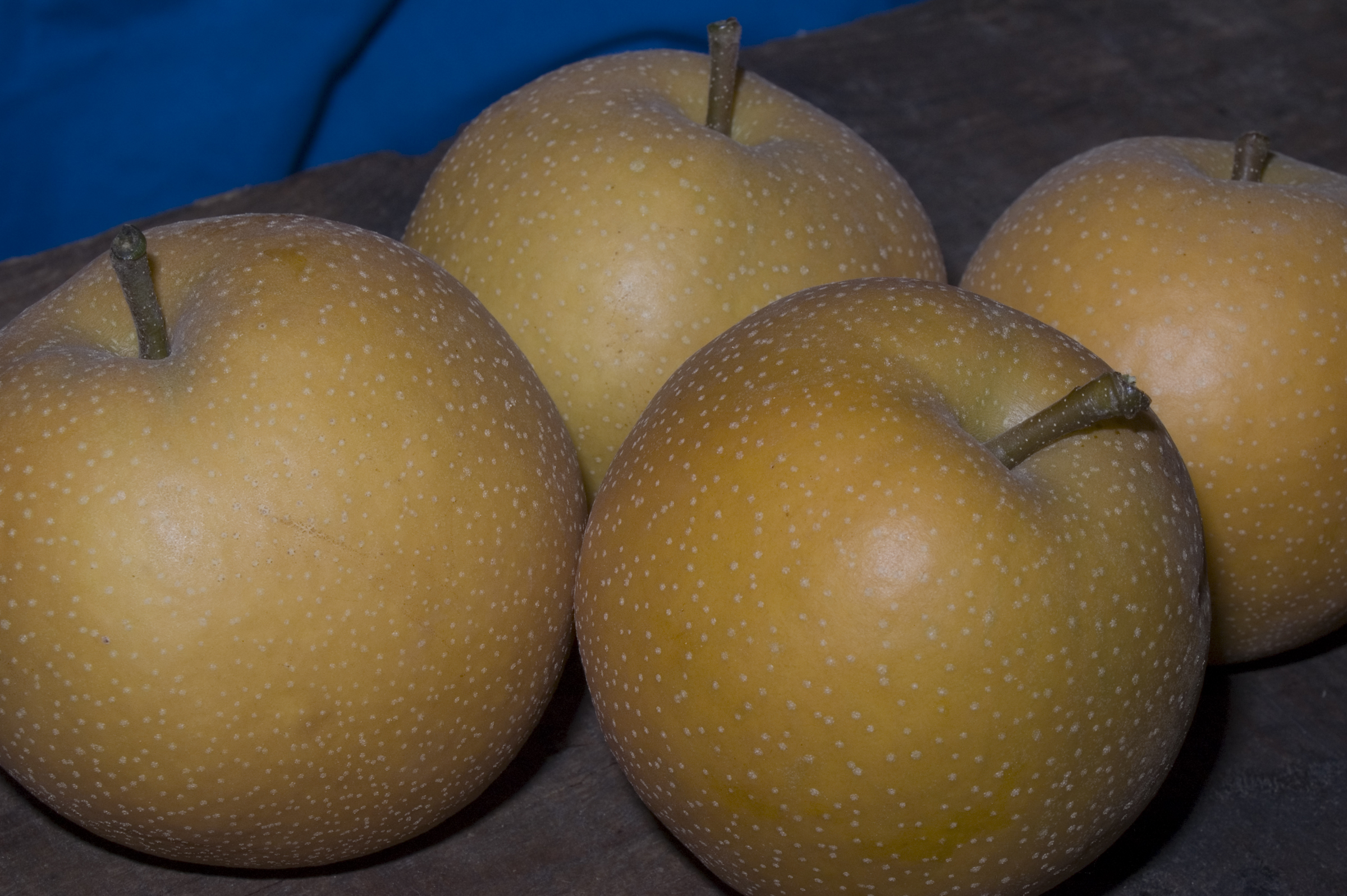 Late blooming and late ripening with excellent quality. Large, juicy, sweet, crisp, flavorful russet type Asian pear with greenish or golden brown skin. Variety most resistant to fireblight. Bears very young and then heavily every year; best with thinning. Ripens in September; keeps well. Zones 5 to 9. 450 hours. Pollenized by Hosui, Chojuro, Kikusui, Bartlett. Available on OHxF333.