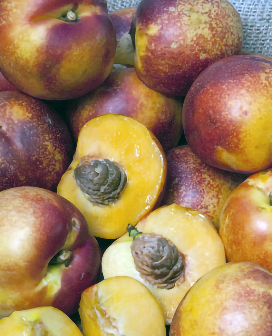 Ripens in early July. Zones 6 to 9. Expected chill required is 500 hours or less. Self-fruitful. (Zaiger) Available on Lov.