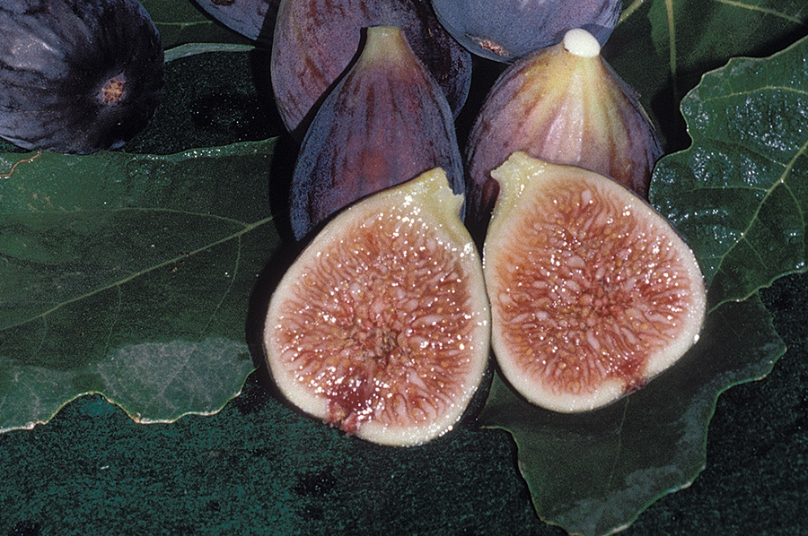 The favorite fig. Purplish black skin, strawberry colored flesh, rich flavor. Heavy bearing, long-lived, large tree. Coast or inland. Fresh/dry/can. Zones 7 to 9. 100 hrs. Self-fruitful. NOTE: Due to their sensitivity, figs are NOT guaranteed.