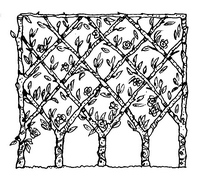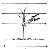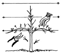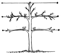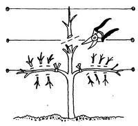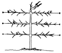 | 4 When the second set of side branches grow to the desired length, tie them to the supports. Don't cut back the lateral branches at this time. |