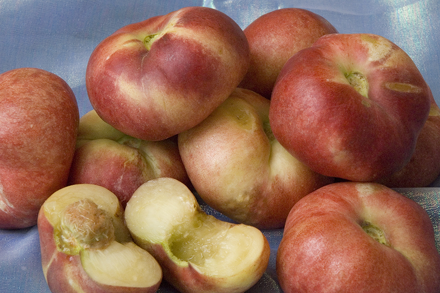 The first donut style nectarine from Zaiger Hybrids! Outstanding early season variety has white flesh that is sweet and juicy. Tree sets at a young age and produces heavily. Thinning is required for large fruit size. Red skin over a blush of yellow. Ripens late June, early July. Zones 6 to 9. 500 hrs. or less. Self-fruitful. Patent pending. Available on Cit.