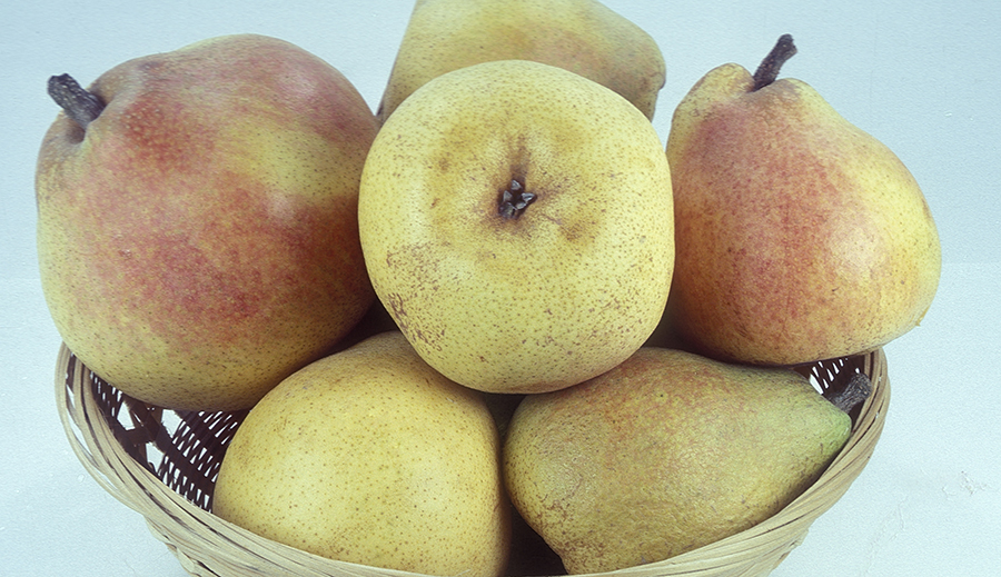 The gift pack pear. Sweet, aromatic, with fine texture, superb flavor and quality - one of the best. Short neck, greenish yellow skin with red blush. Late September/early October harvest. Zones 5 to 9. 600 hours. Self-fruitful in most climates of western U.S. or plant with Bartlett. Available on OHxF333.