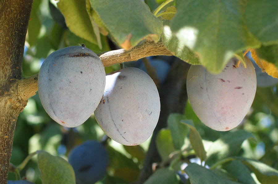Reddish purple skin, greenish yellow flesh, very sweet. Used fresh and for canning. Lower chilling requirement than other European prunes/plums. Ripens mid August. Zones 5 to 9. 550 hrs. Self-fruitful. Available on Cit.