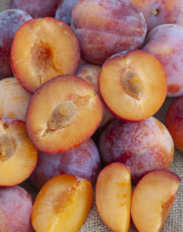 The newest addition to the Pluerry family, this one really lives up to its name. Fruit is small to medium sized with beautiful orange red skin and juicy amber flesh that packs a wallop of flavor. Ripens in early September in central California. Pollenized by Emerald Beaut plum, Flavor King Pluot and most mid to late blooming Pluerries, Pluots and plums. Zones 6 to 9. 500 hours or less. (Zaiger) Available on Cit.