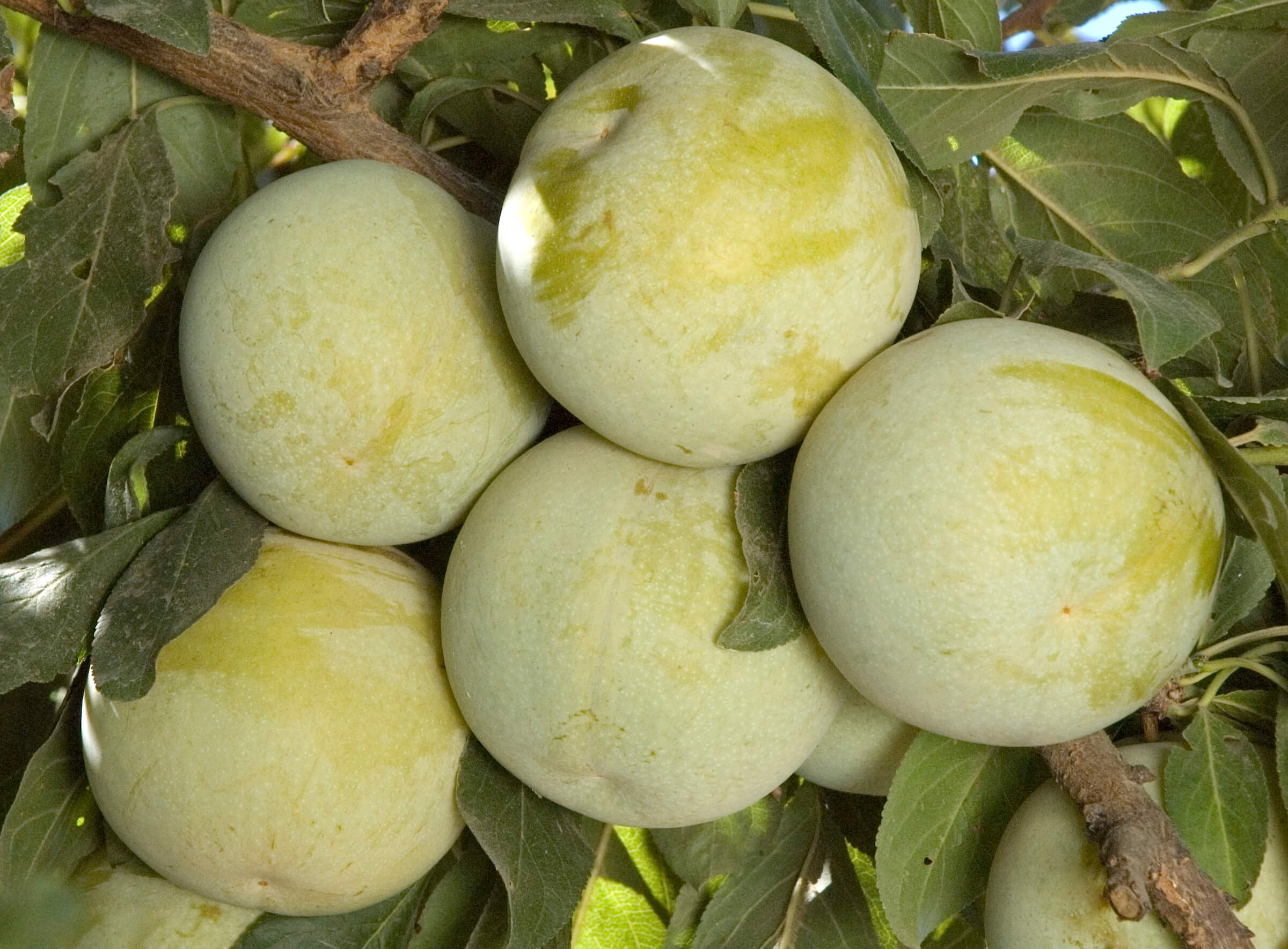 Wonderful plum-apricot hybrid. Very sweet, juicy, with slight apricot after taste, no tartness and very pleasing flavor; superb eating quality. Greenish yellow skin with amber-orange flesh. Prolonged harvest; ripens (and holds on tree) mid July through August. Zones 6 to 9. 4-500 hrs. Best pollenizer is Burgundy plum; Dapple Dandy or Flavor Supreme pluots and Santa Rosa plum are also adequate. Patent no. 7420 (Zaiger). Available on Cit.